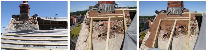 The job would not raise the roof pitch so planning permission was not needed we did however carry out all works under building control. This roofing job was a complicated one as you can some the pictures. The main problem was that the roof was out of square by a long way and that much of the existing timber was rotten including the roof plates, roof joists and perlins.